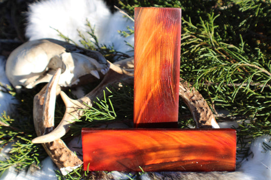 Premium buffalo horn knife handle scale pair | 5x1.5x1/4 | | high quality dyed red / orange horn knife making materials | Luxury imported