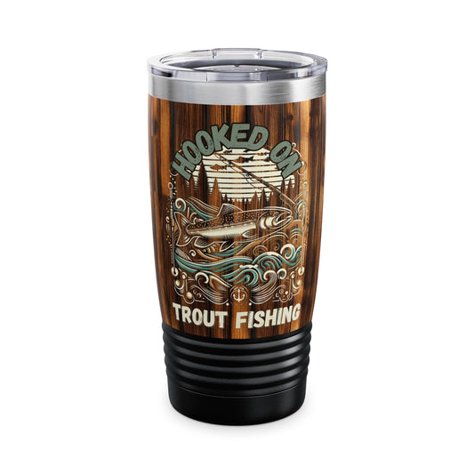 Anglers Delight - Hooked on Trout Fishing 20oz Tumbler - Stainless Steel, Double-Wall Insulation, Ribbed Grip - Perfect for Fishermen