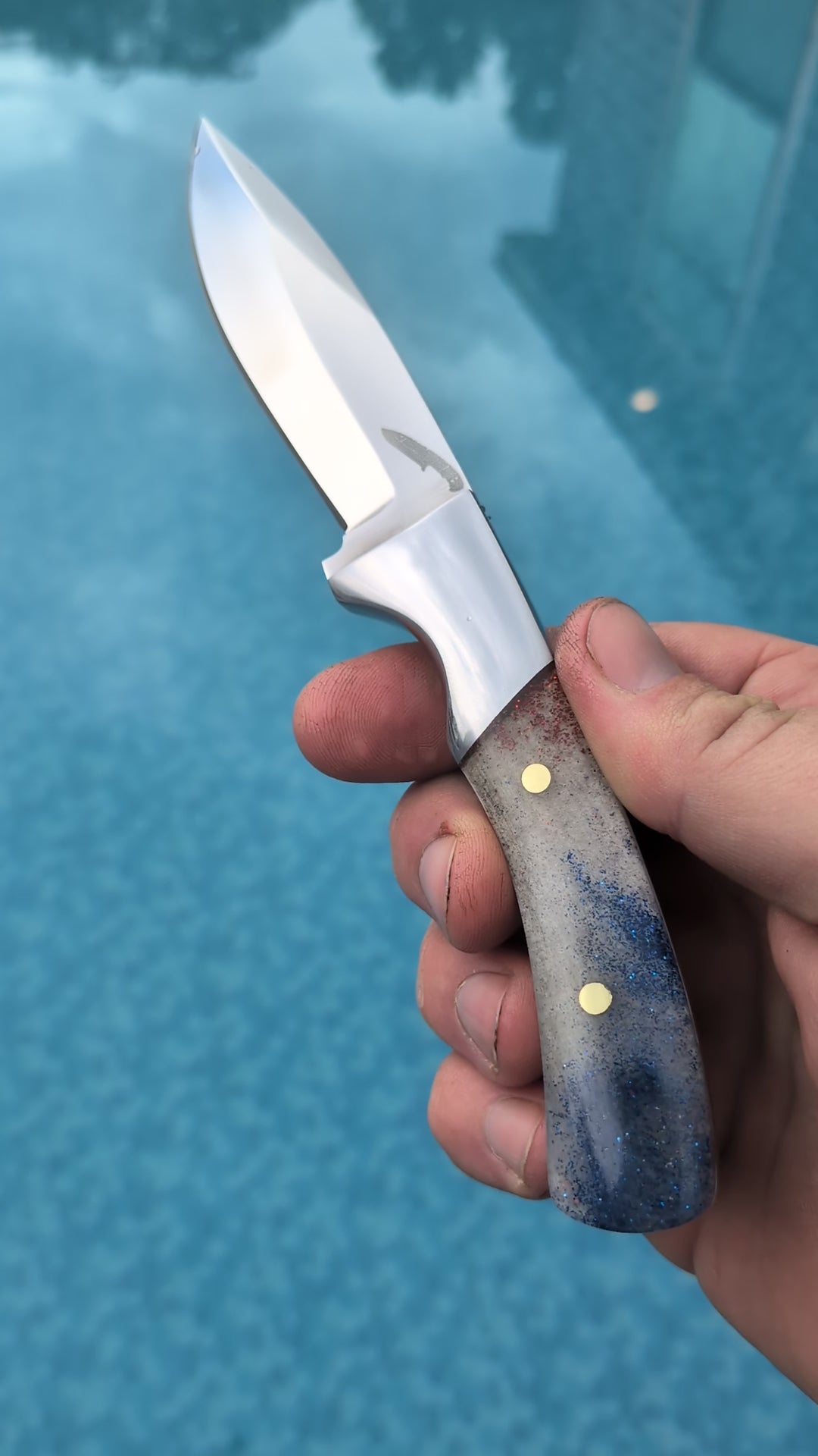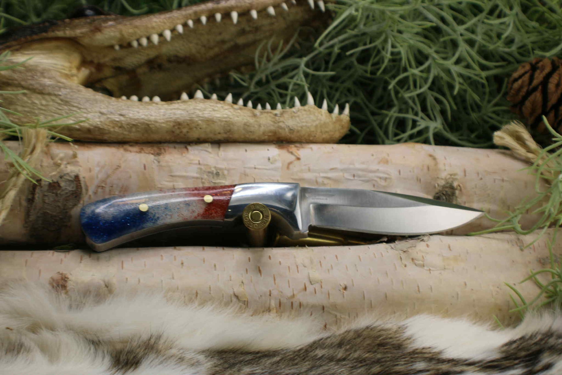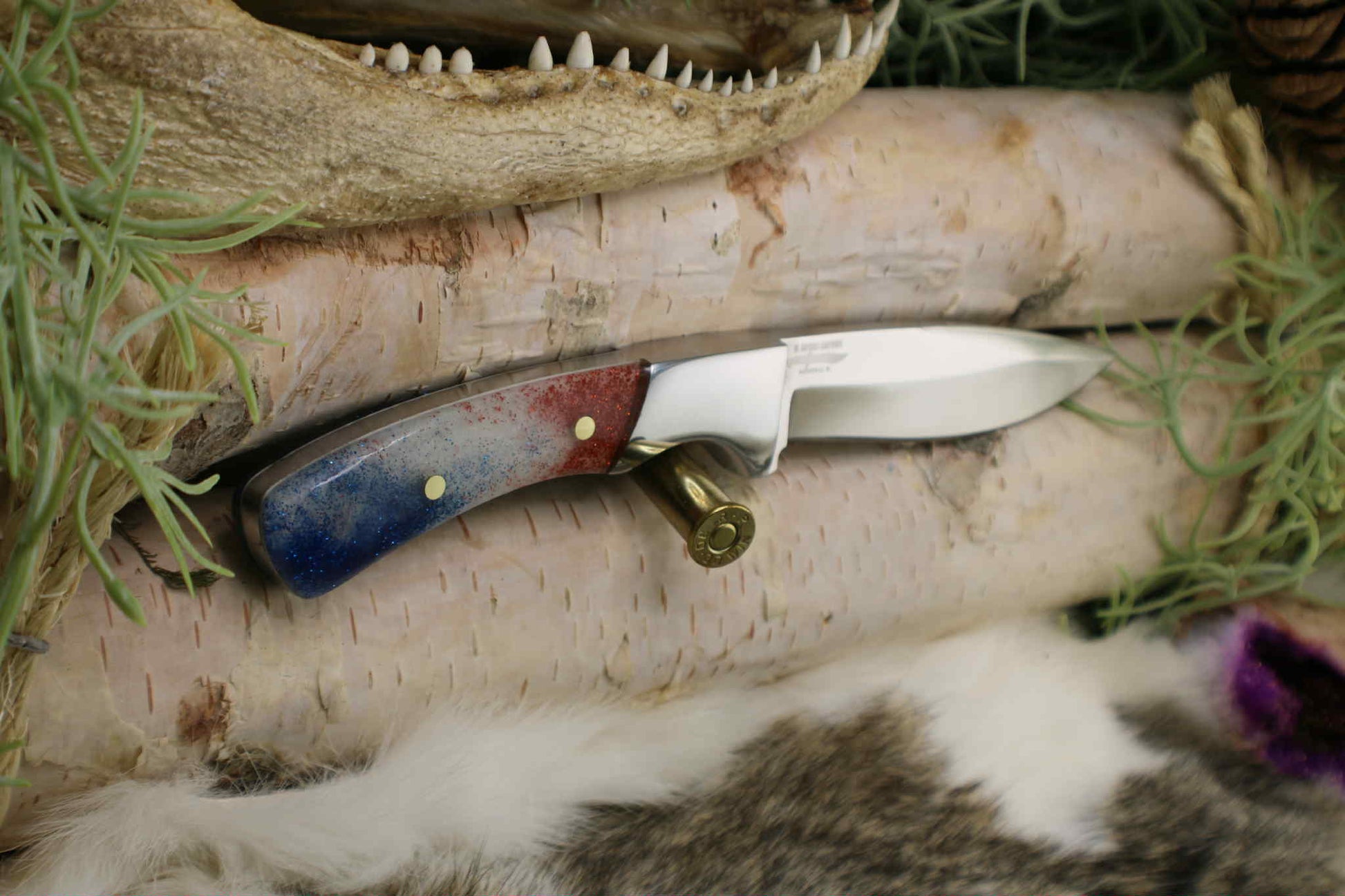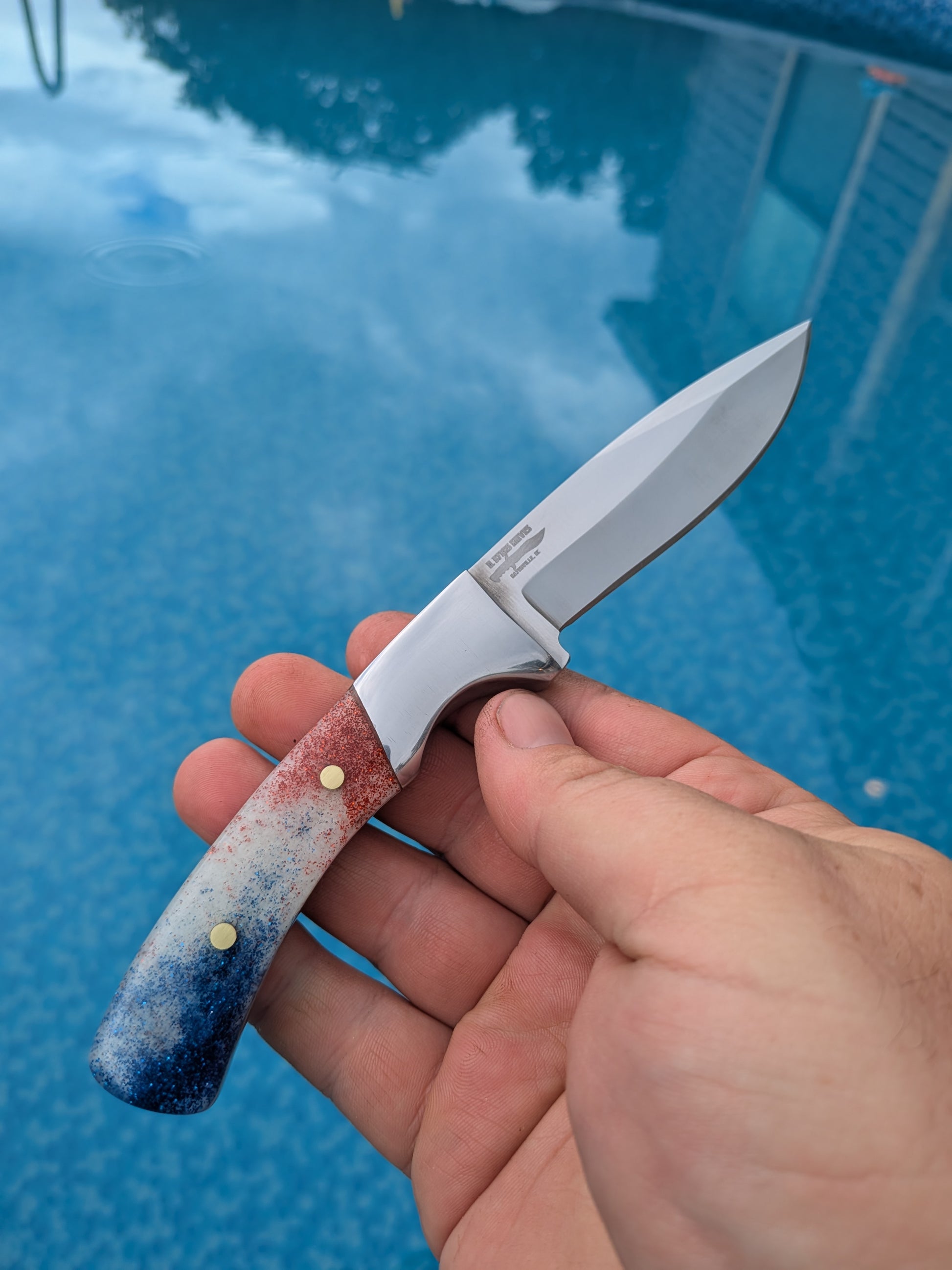 Completed Drop point hunter with Red White and Blue resin handle
