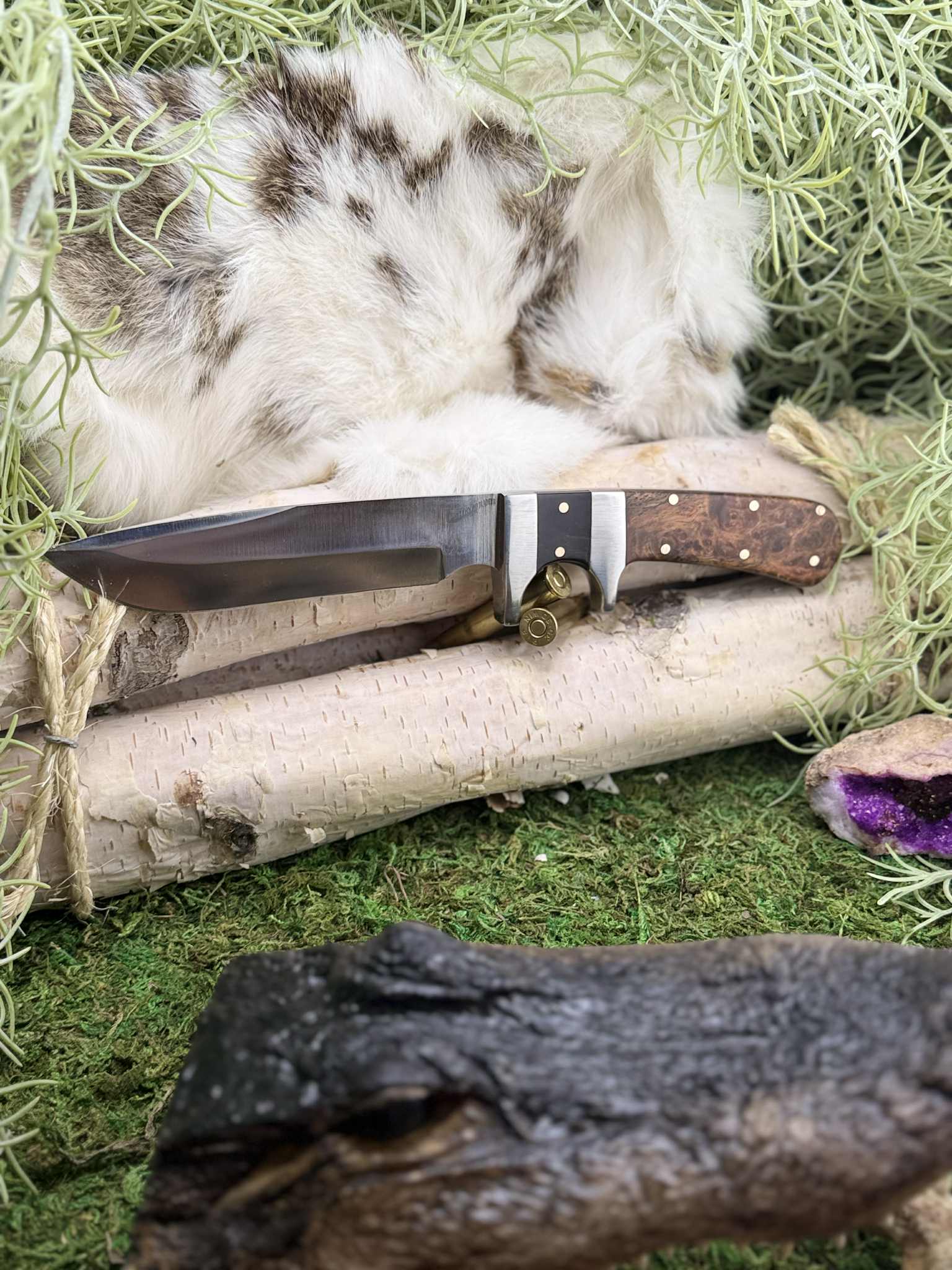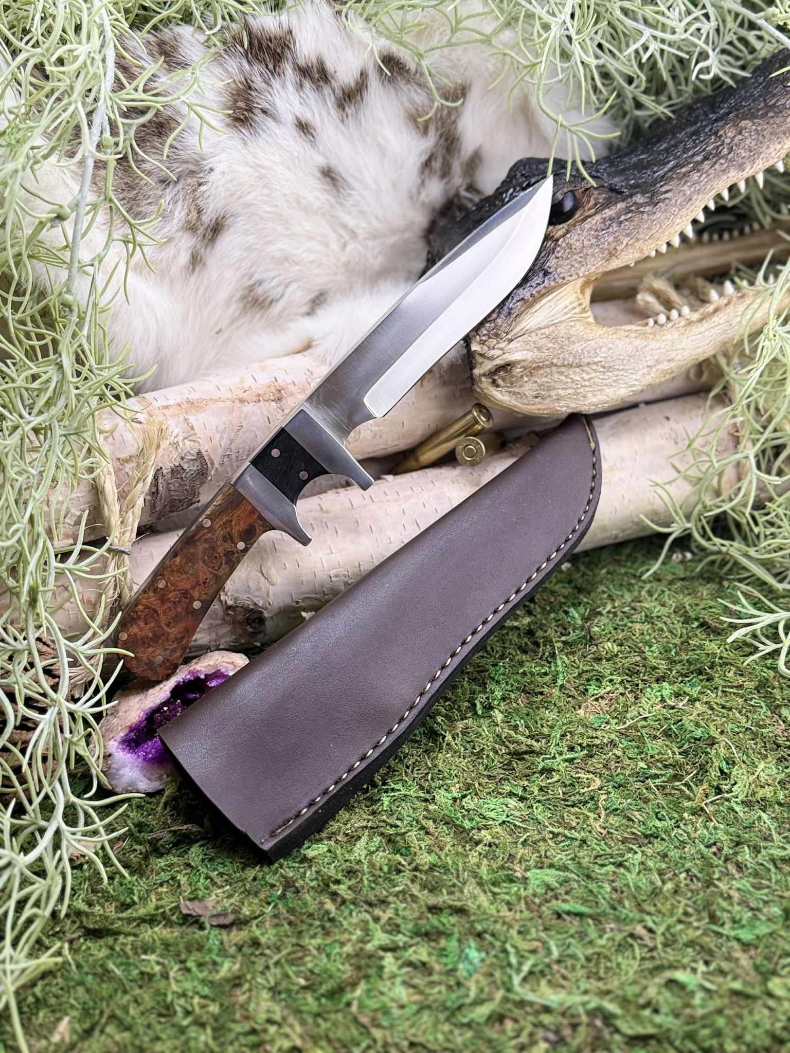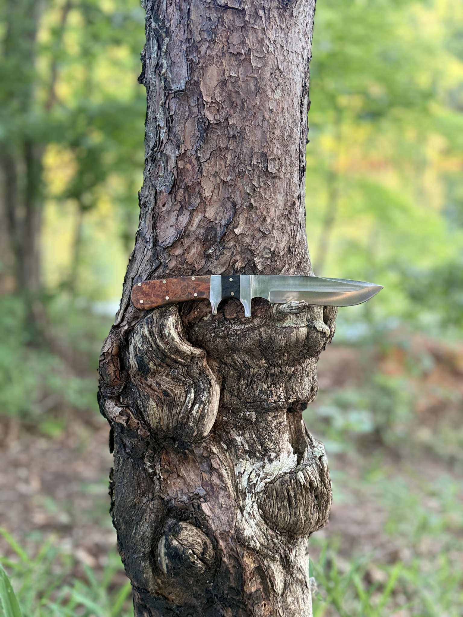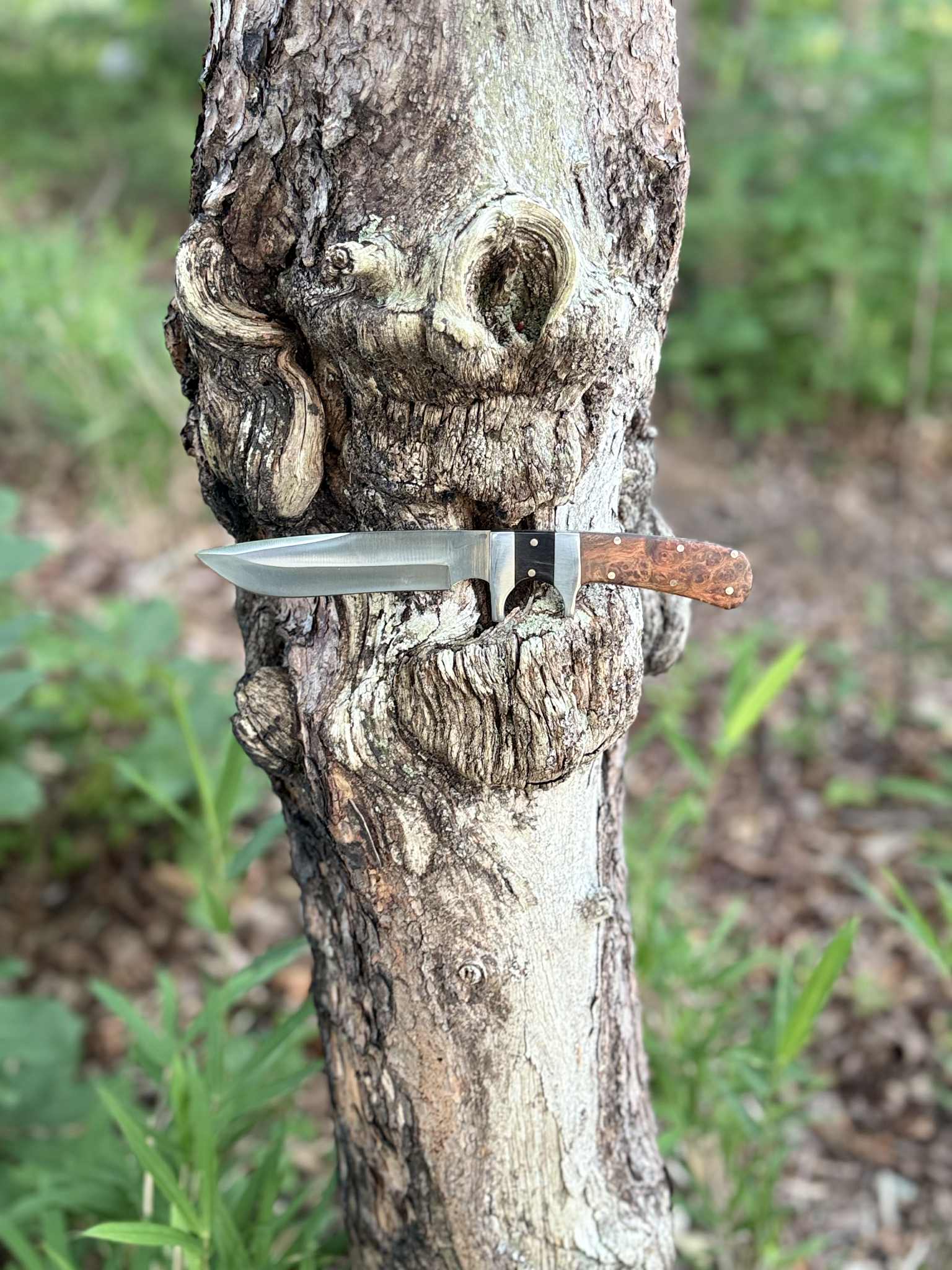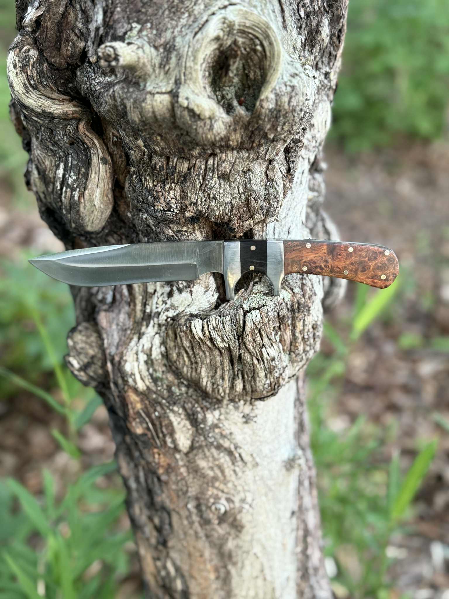 This knife is a truly unique piece of functional art. The individual grain of the Amboyna burl and the natural variations in the buffalo horn ensure that this exact knife will never be replicated. It's a singular work of passion and precision, perfect for any collector or enthusiast.