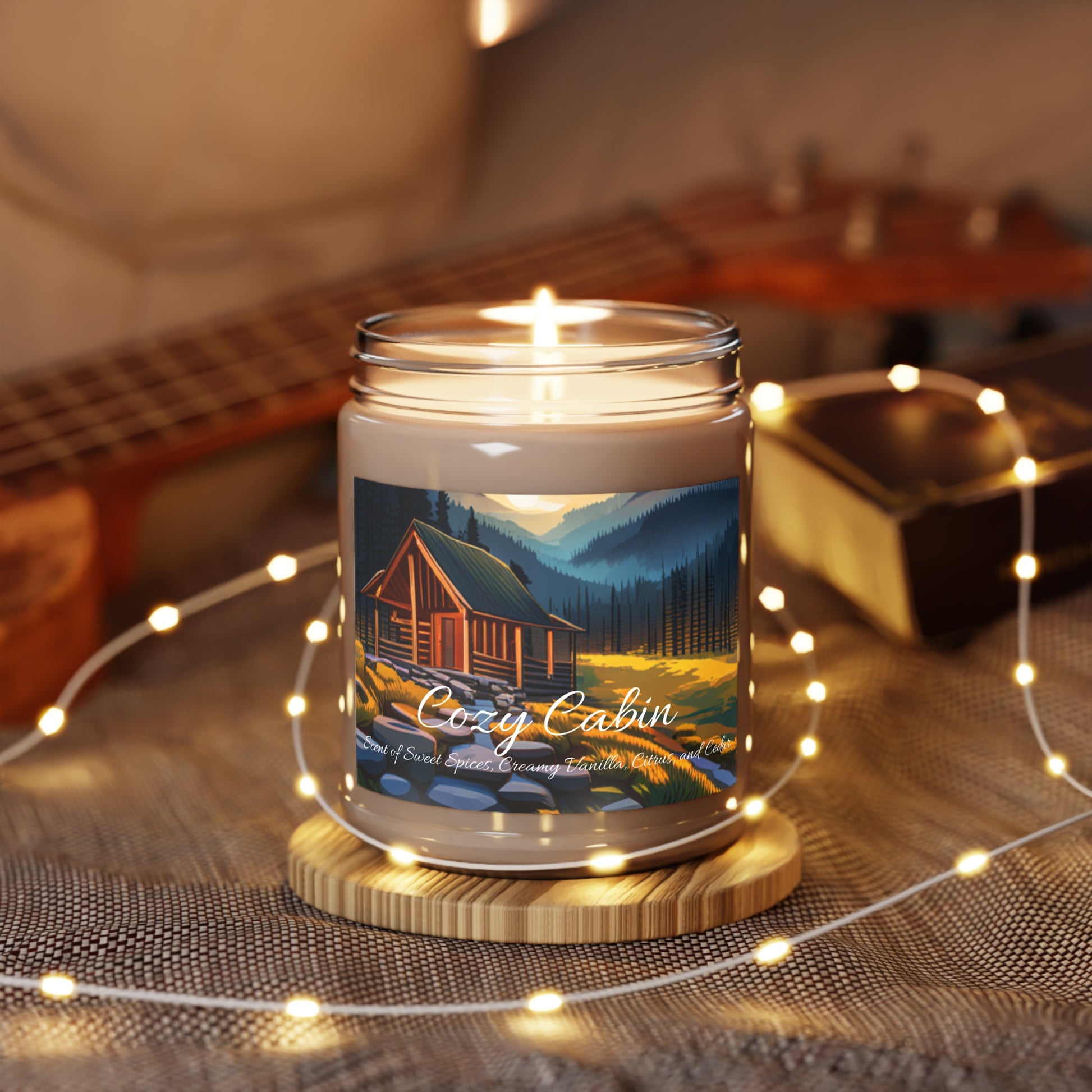 Cozy Cabin Candle - Warm Brown Sugar & Cinnamon, Sweet Vanilla, Citrus Zest, Cedar Musk Scented, 9oz