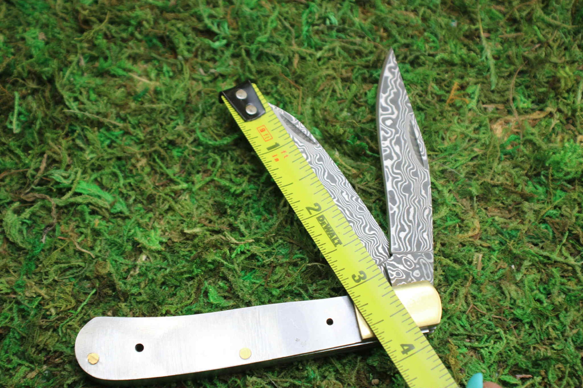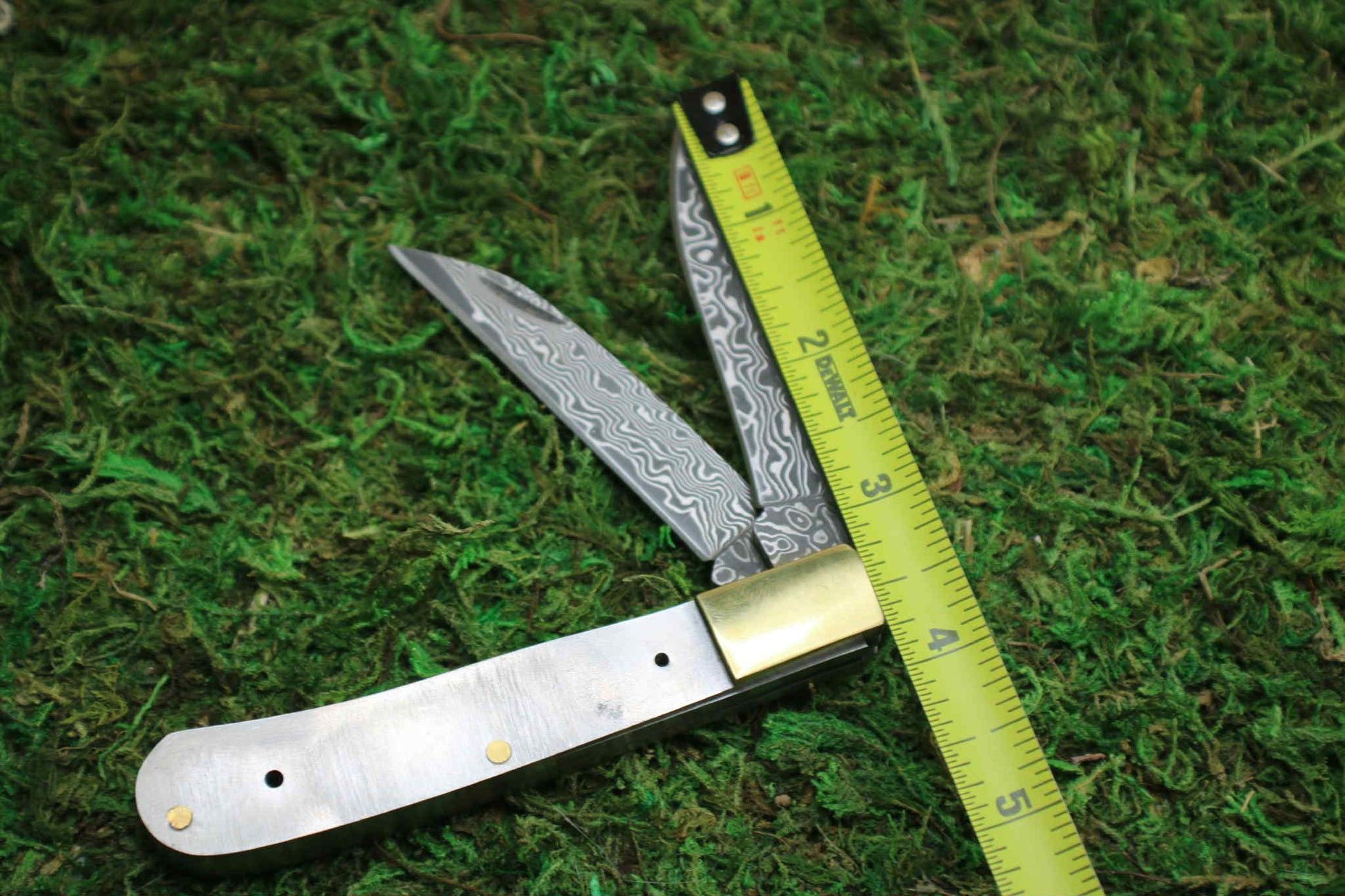* Stainless San Mai Damascus Blade Blanks: Craft a classic two-bladed trapper with these beautiful blanks. The core is made of 8Cr14MoV stainless steel, known for its excellent corrosion resistance and edge retention. This core is expertly jacketed in 70 layers of stunning stainless Damascus steel, providing not only a beautiful, undulating pattern but also added strength and durability. One blade features a clip-point design for detailed tasks, while the other offers a Sheepsfoot point, ideal for skinning and general utility.