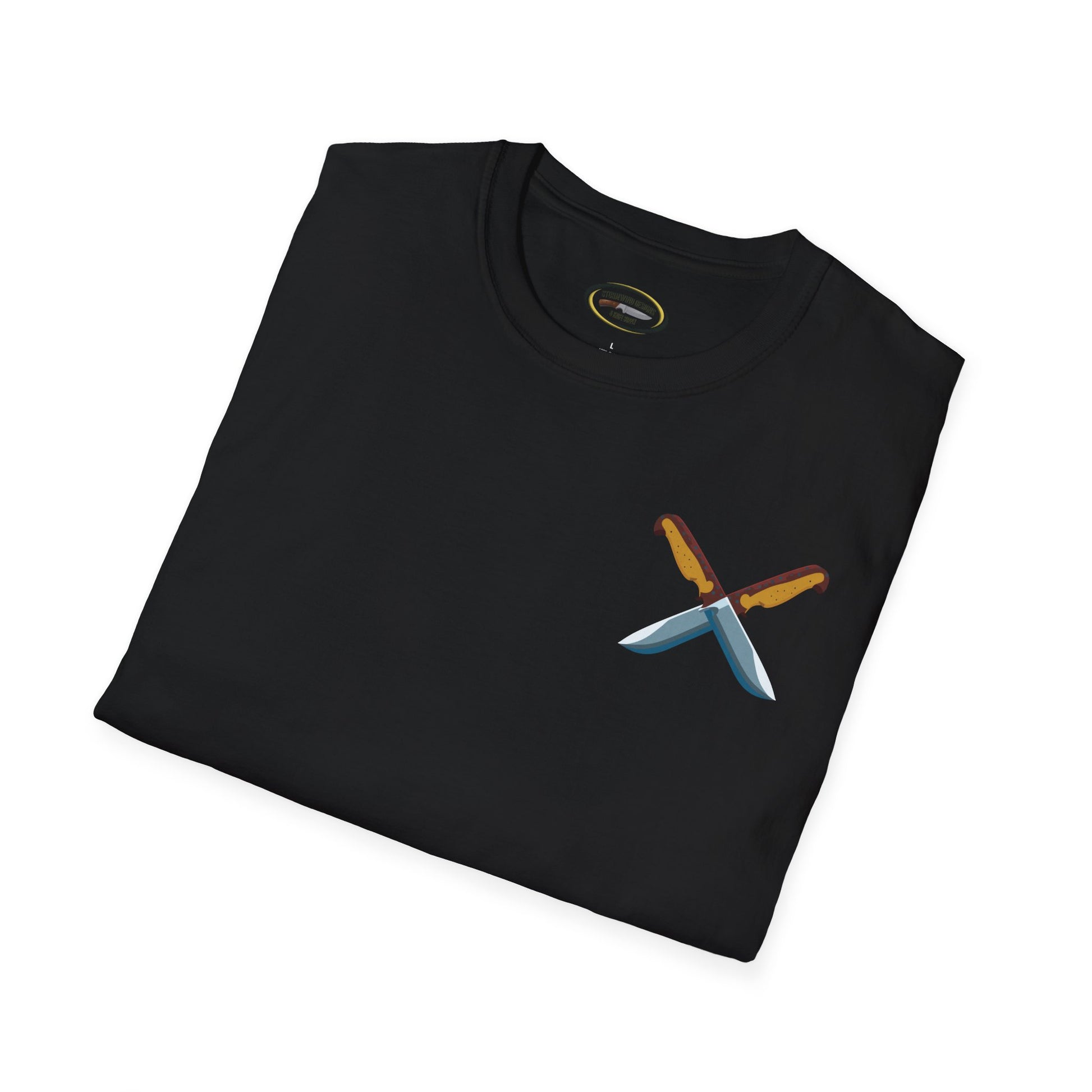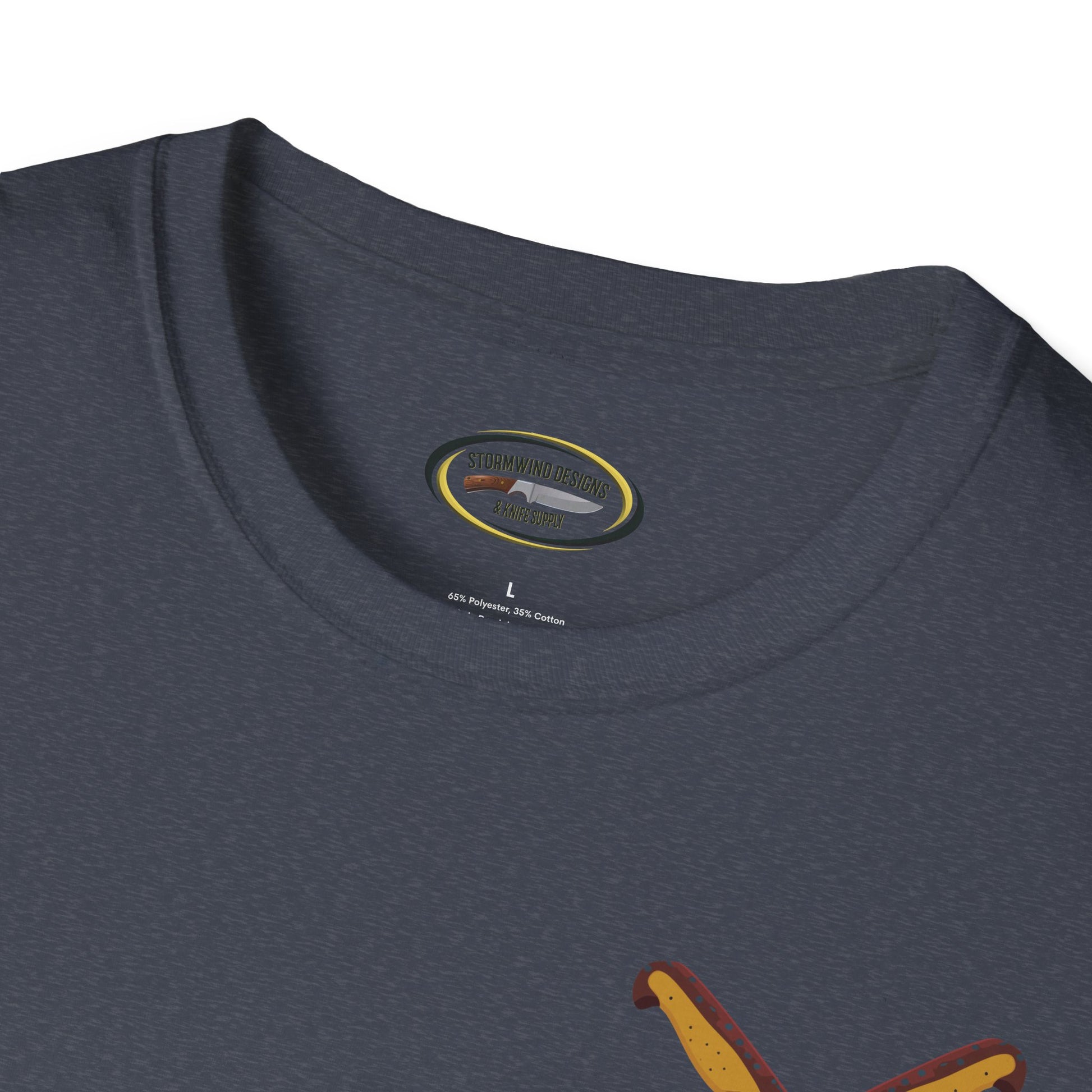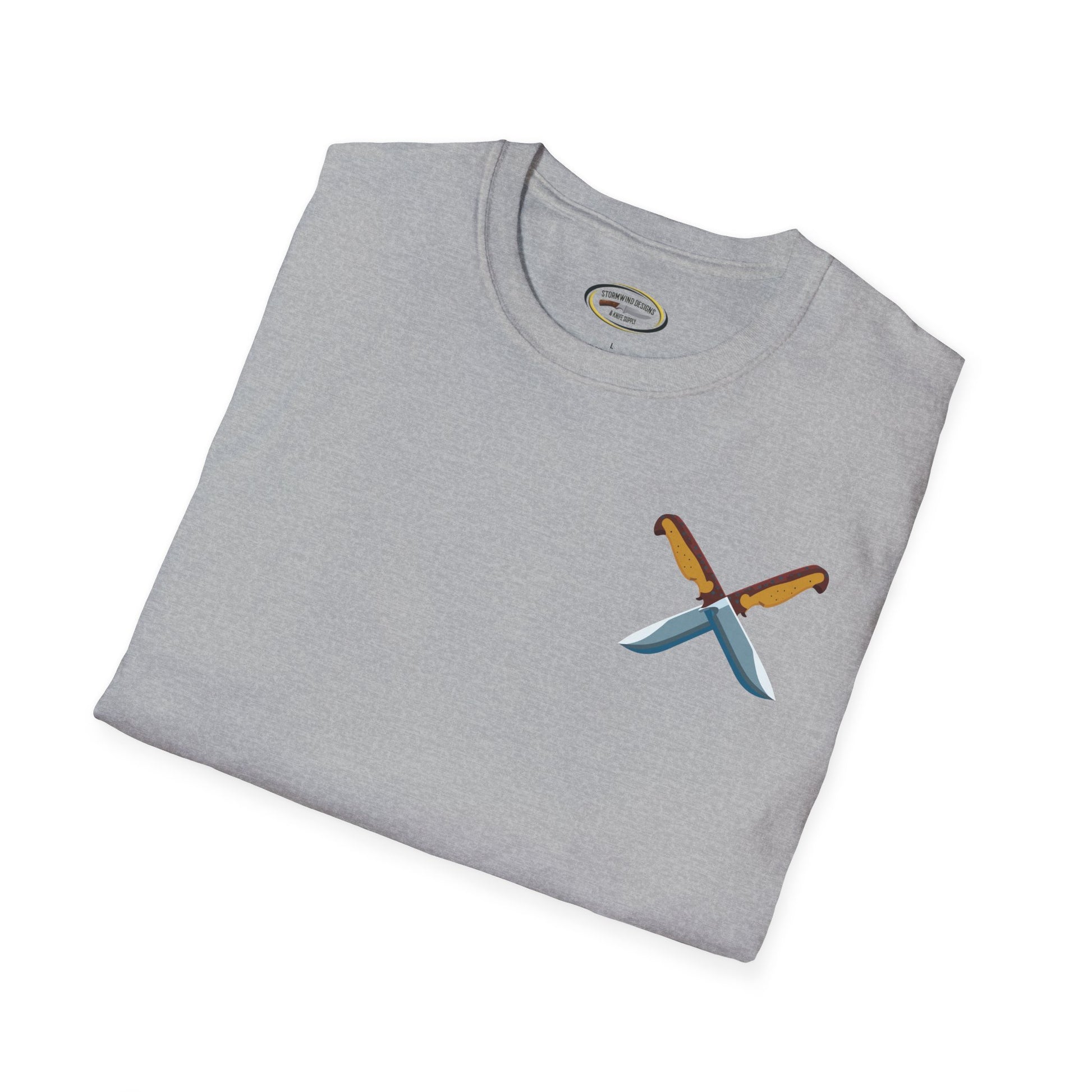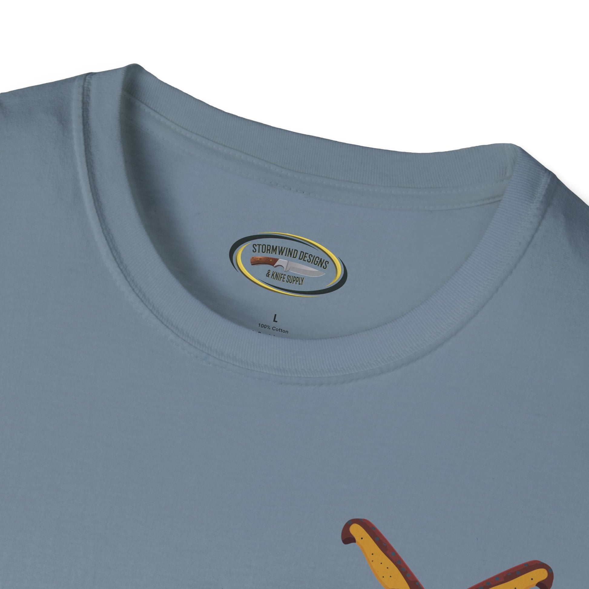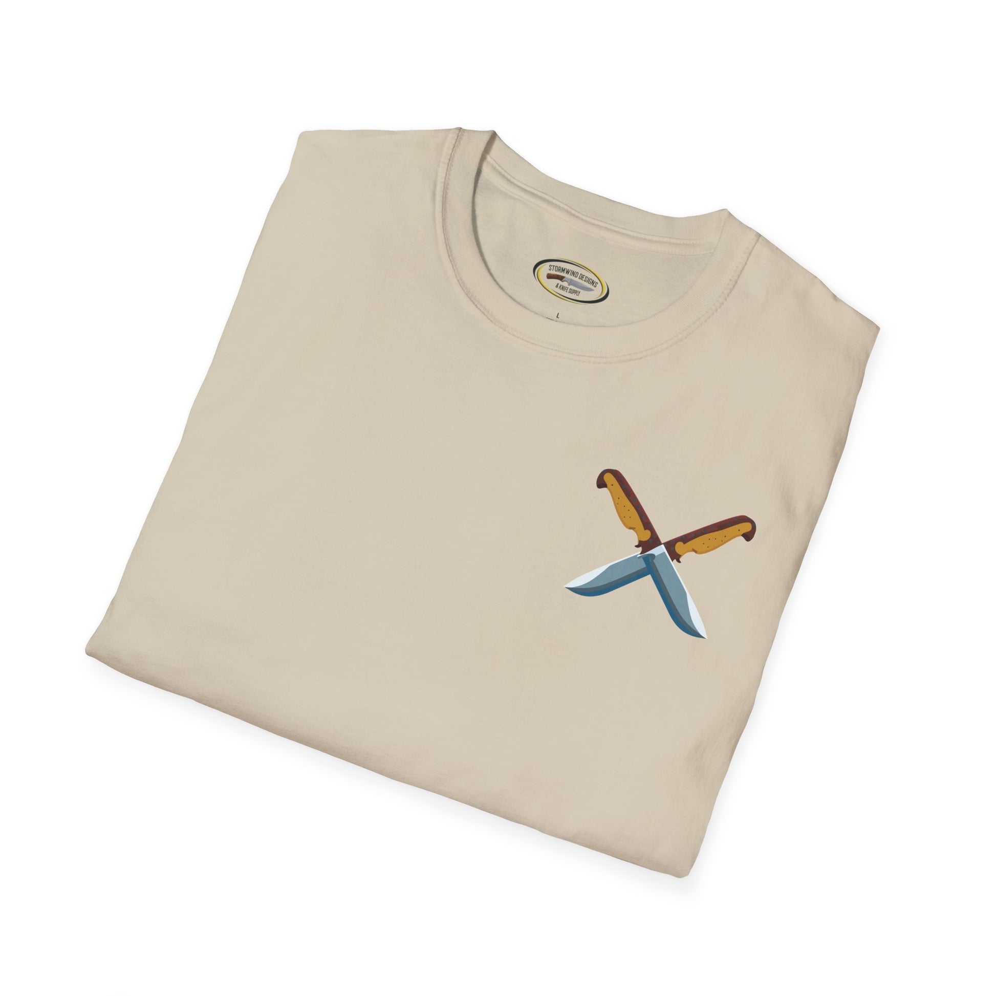 For those who appreciate the fine edge of craftsmanship, our “I’d Grind That” T-Shirt is a cut above the rest. Designed for the knife aficionado, this shirt features an iconic graphic of crossed hunting knives, capturing the essence of the knife-making art.
