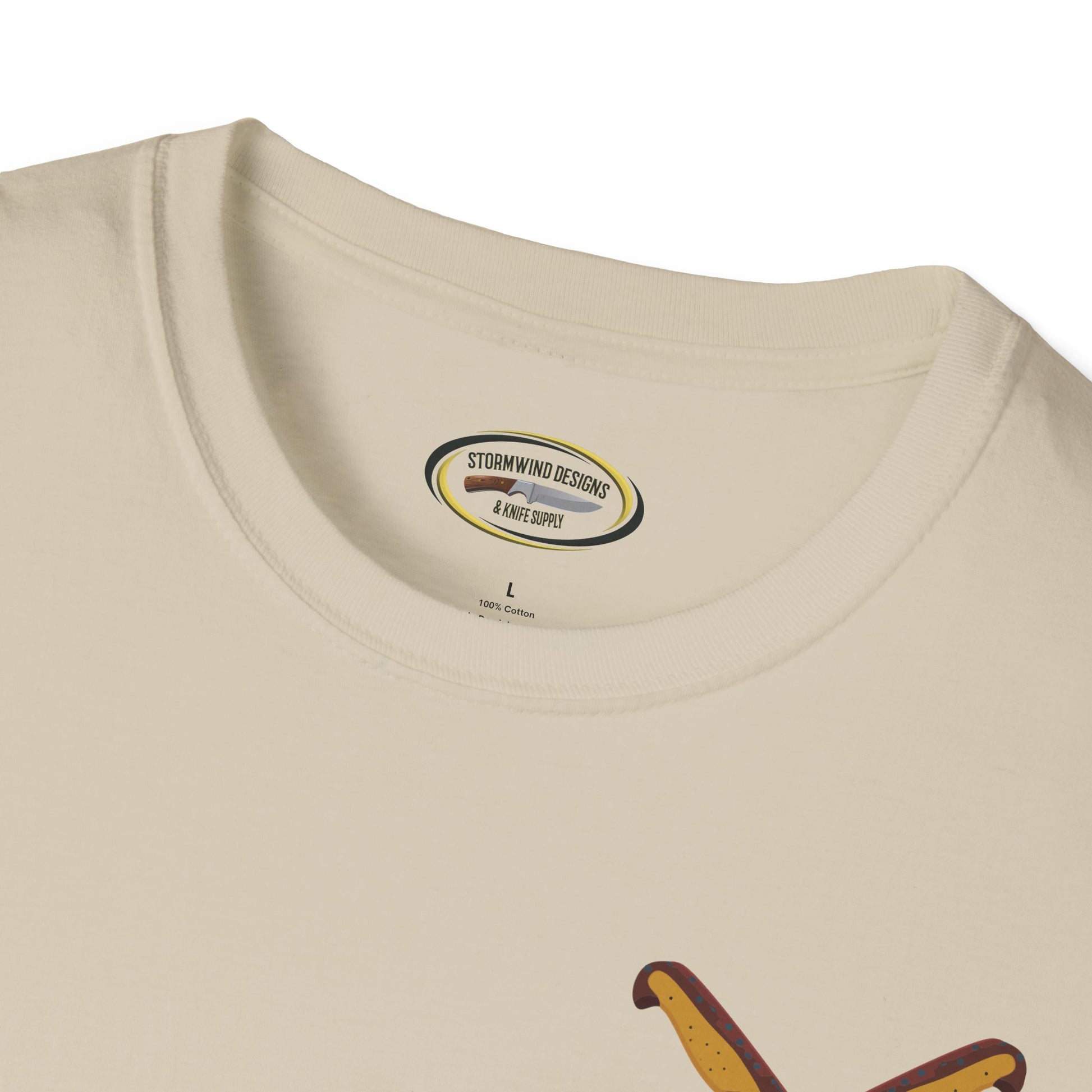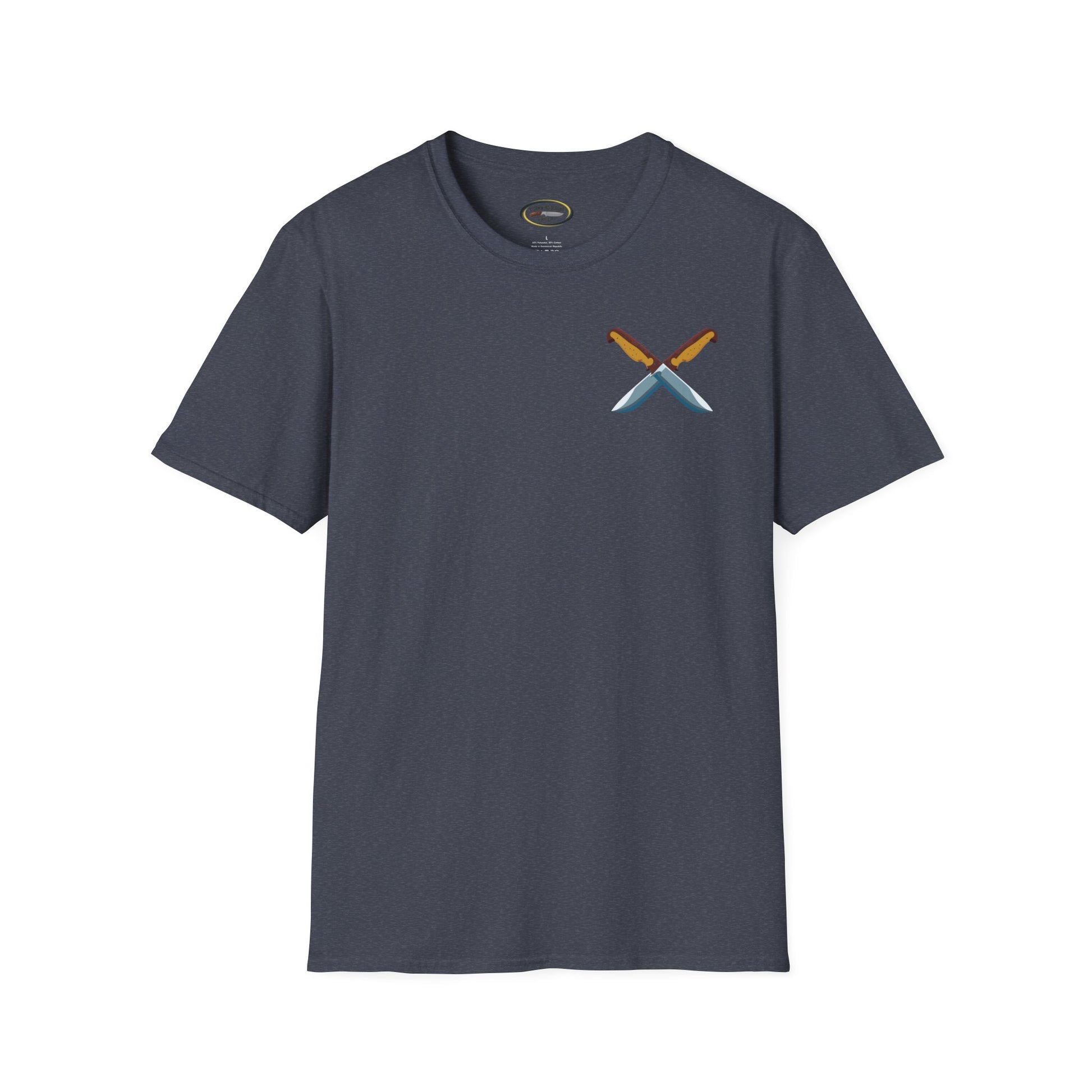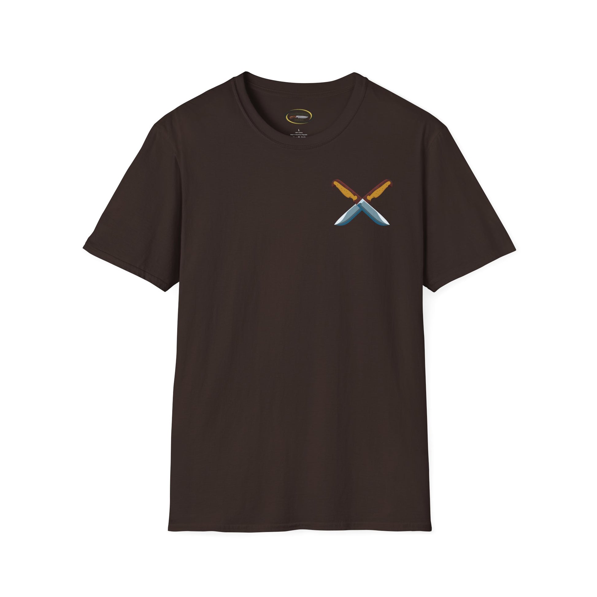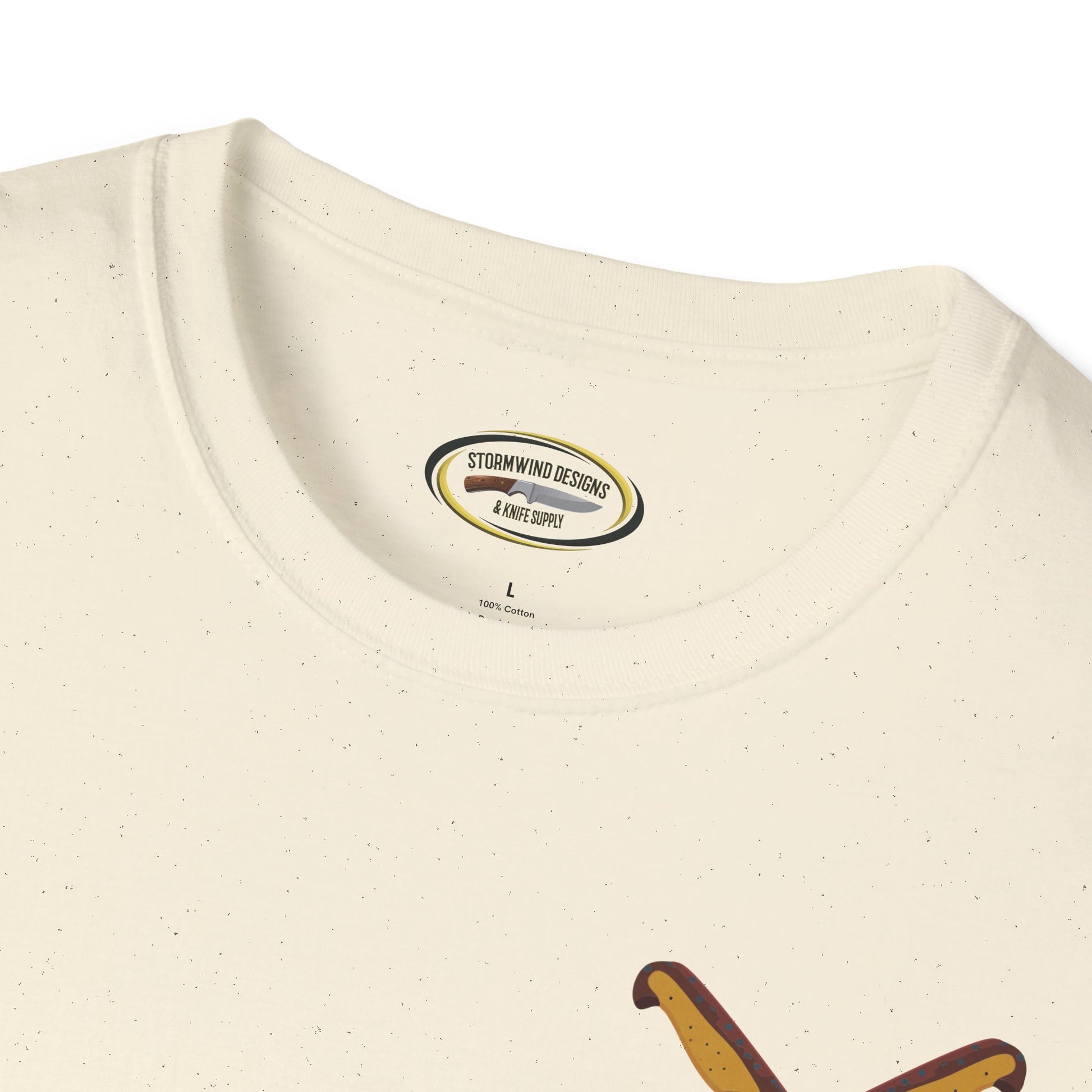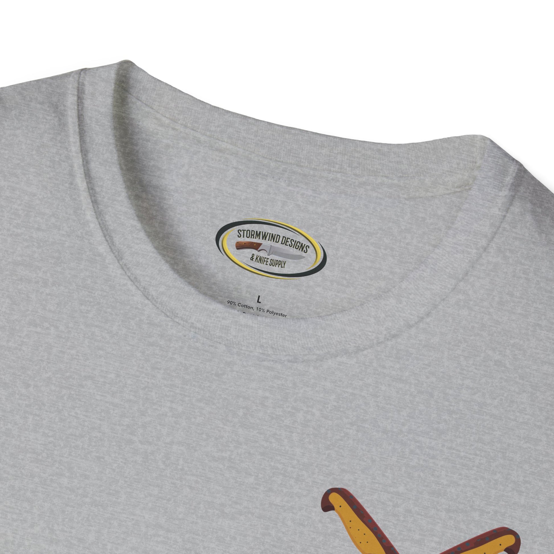 For those who appreciate the fine edge of craftsmanship, our “I’d Grind That” T-Shirt is a cut above the rest. Designed for the knife aficionado, this shirt features an iconic graphic of crossed hunting knives, capturing the essence of the knife-making art.