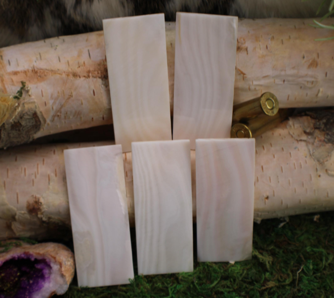 Craft a true artisan knife from these mother of pearl shell knife handle inlay slabs. Entirely handmade, polished from genuine camel bone that was left to age for years. The knife supply comes in a natural white with a dominant yellow shade and an antique feel. The aging process enhances the bone’s strength and character, making it extra strong and giving it a unique organic pattern, appreciated by true craftsmen.