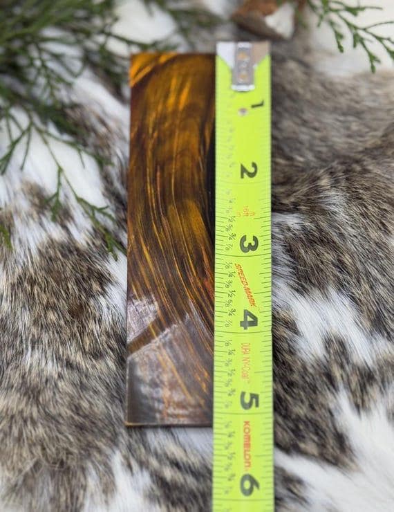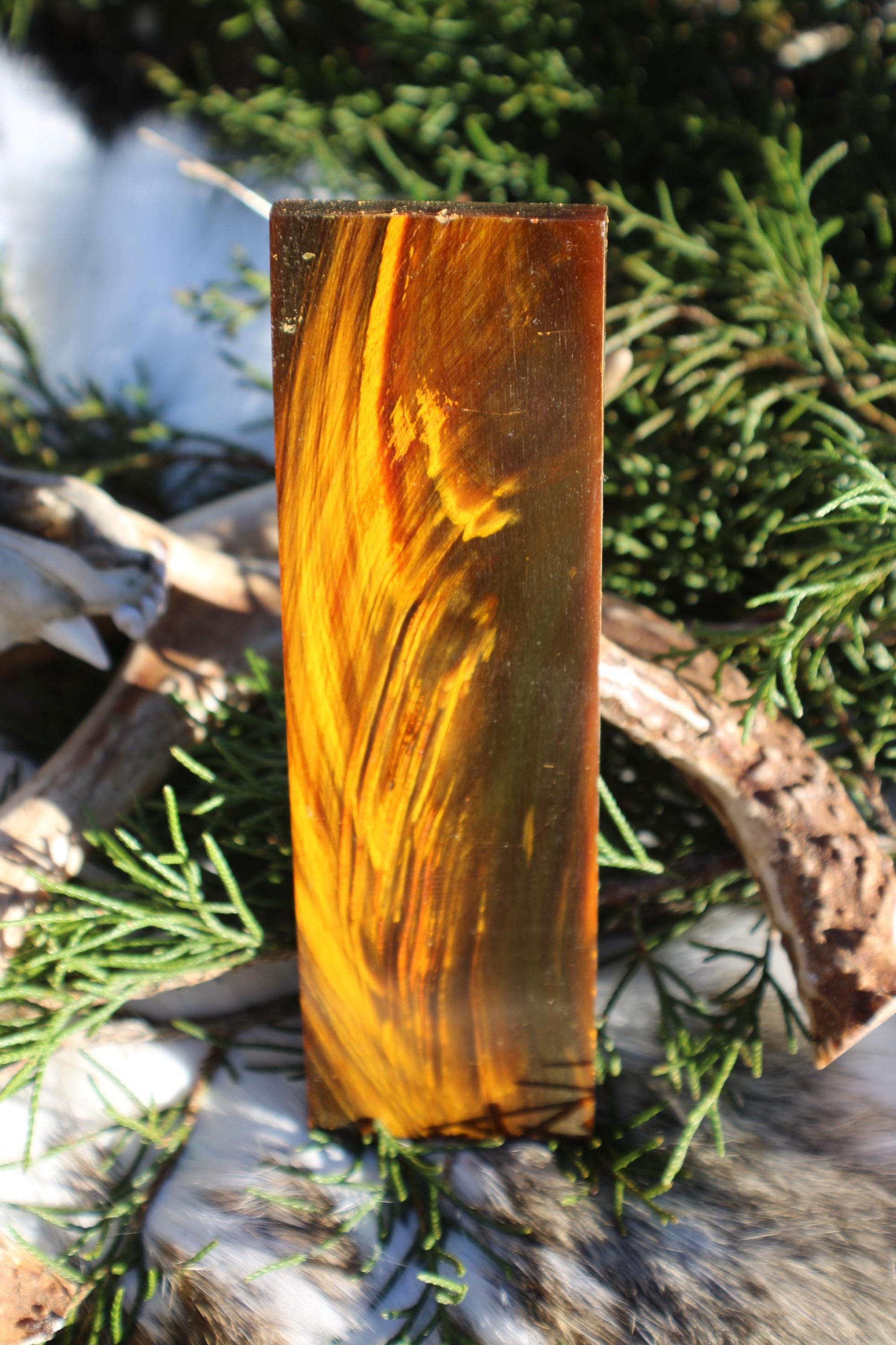 Immerse yourself in the allure of our premium buffalo horn. A horn handle material polished honey / yellow with swirl premium buffalo horn knife scales, each pair showcasing the beauty of contrast and individuality. Be advised that each pair may have varying amounts of swirls. Each scale is approximately 5 inches by 1.5 inches and 1/4 inch thick, and with your purchase, you will receive two of these remarkable scales.