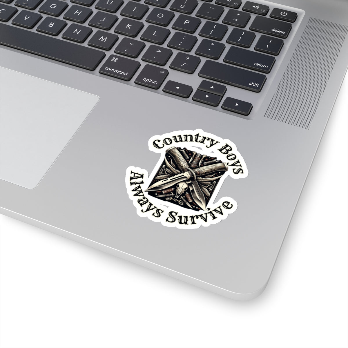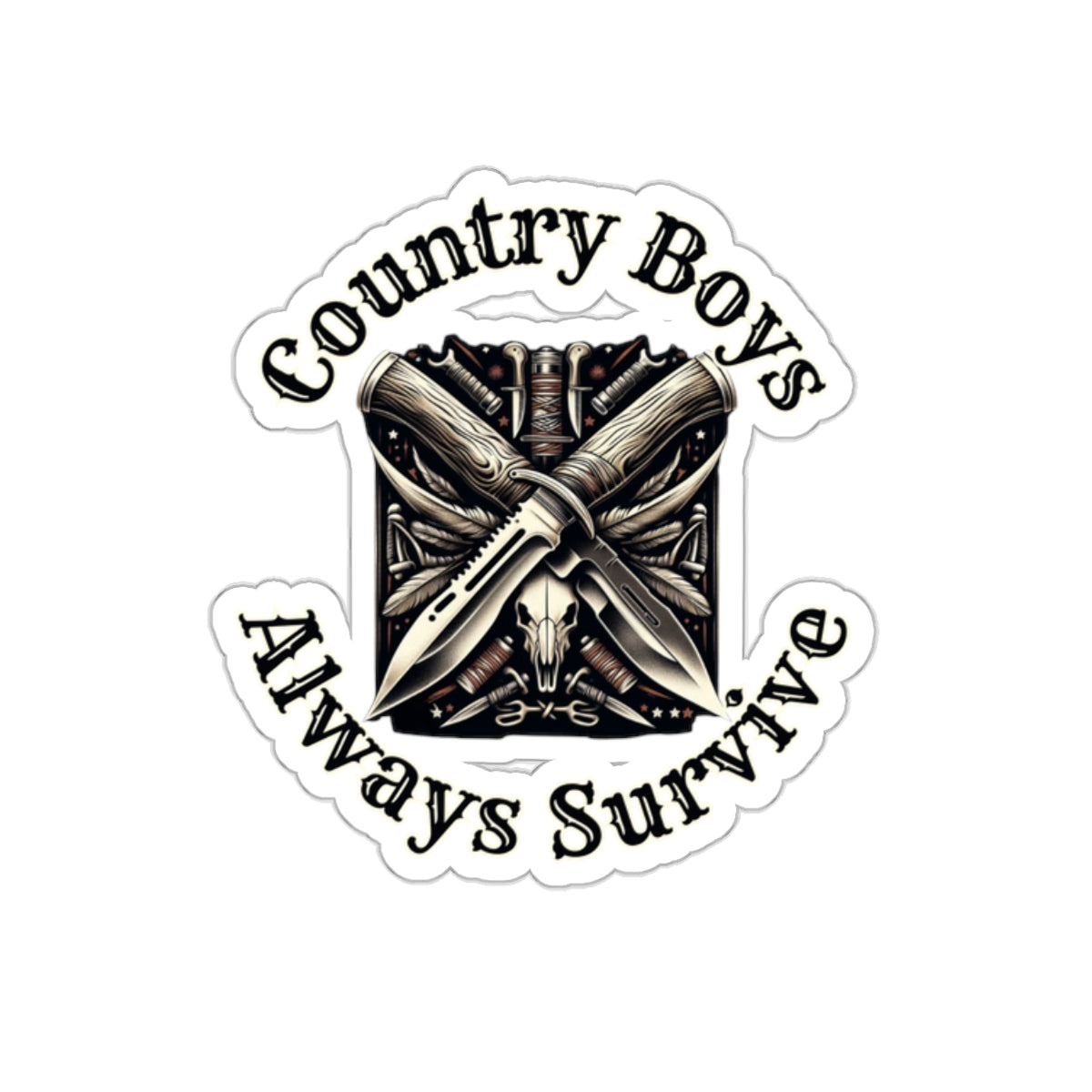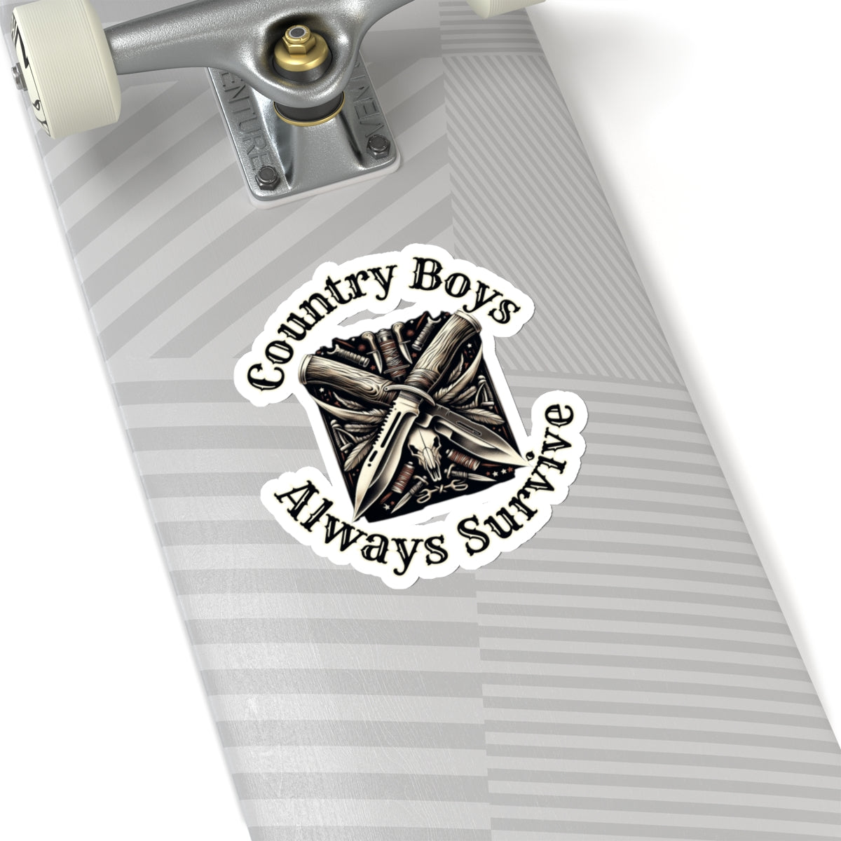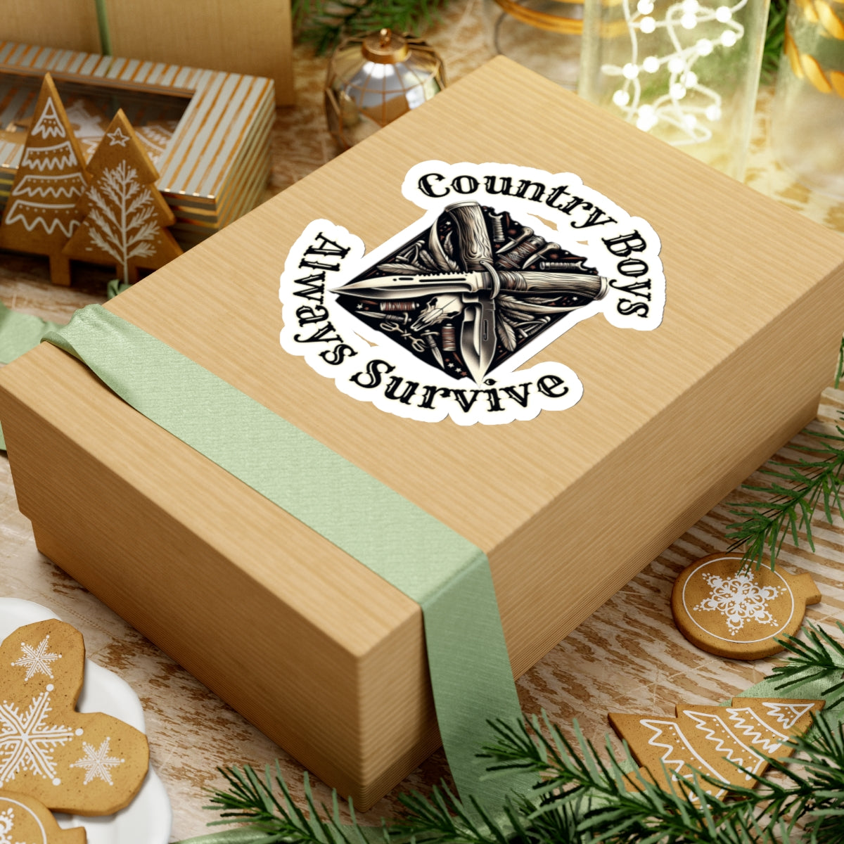 Rugged Resilience Decals - Country Boys Always Survive Vinyl Stickers - Durable, Glossy Finish, Multiple Sizes - Perfect for Indoor Use