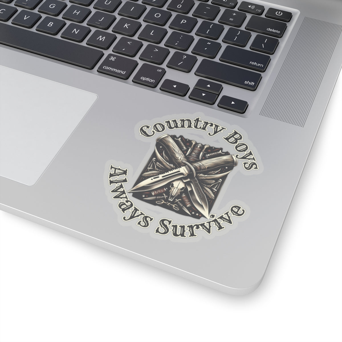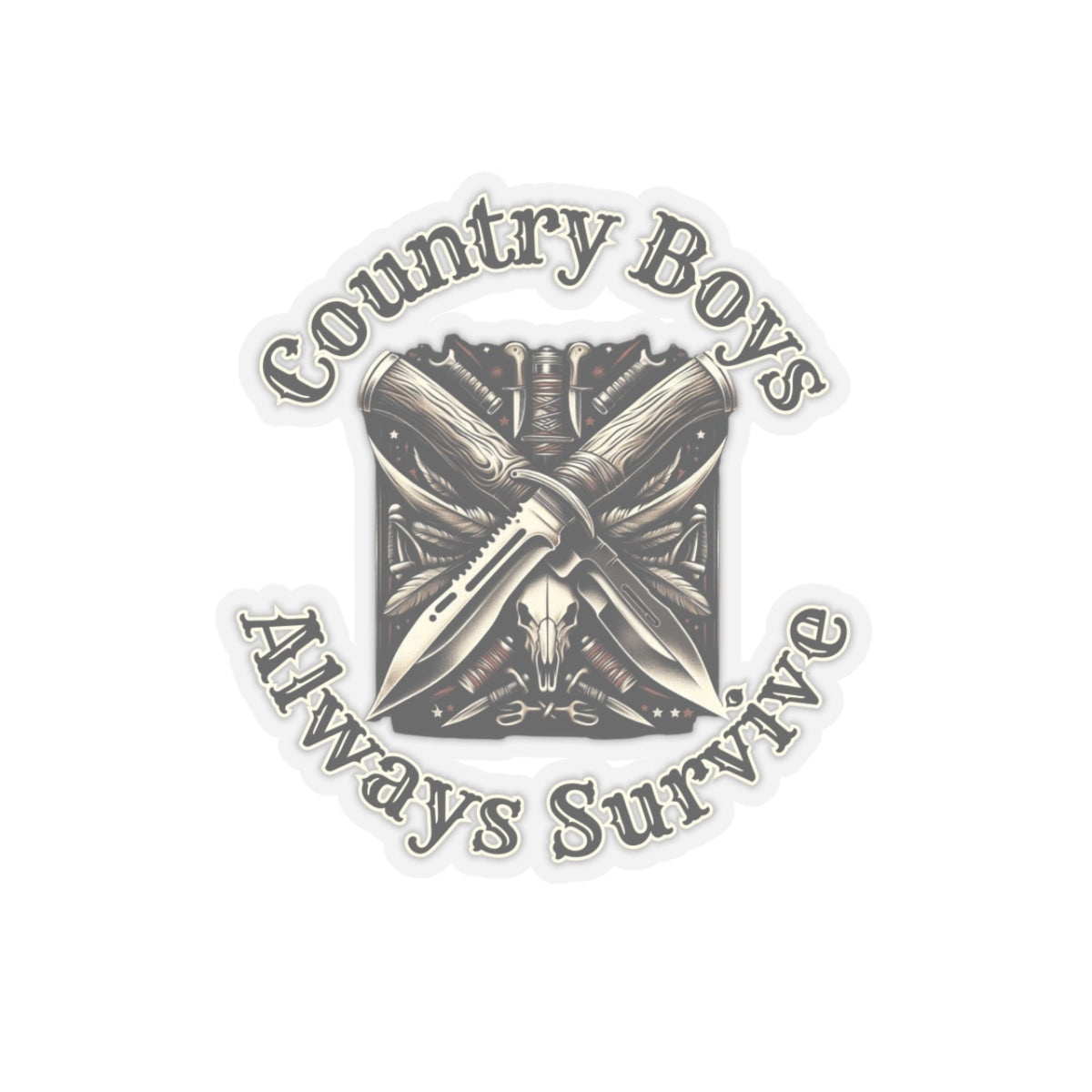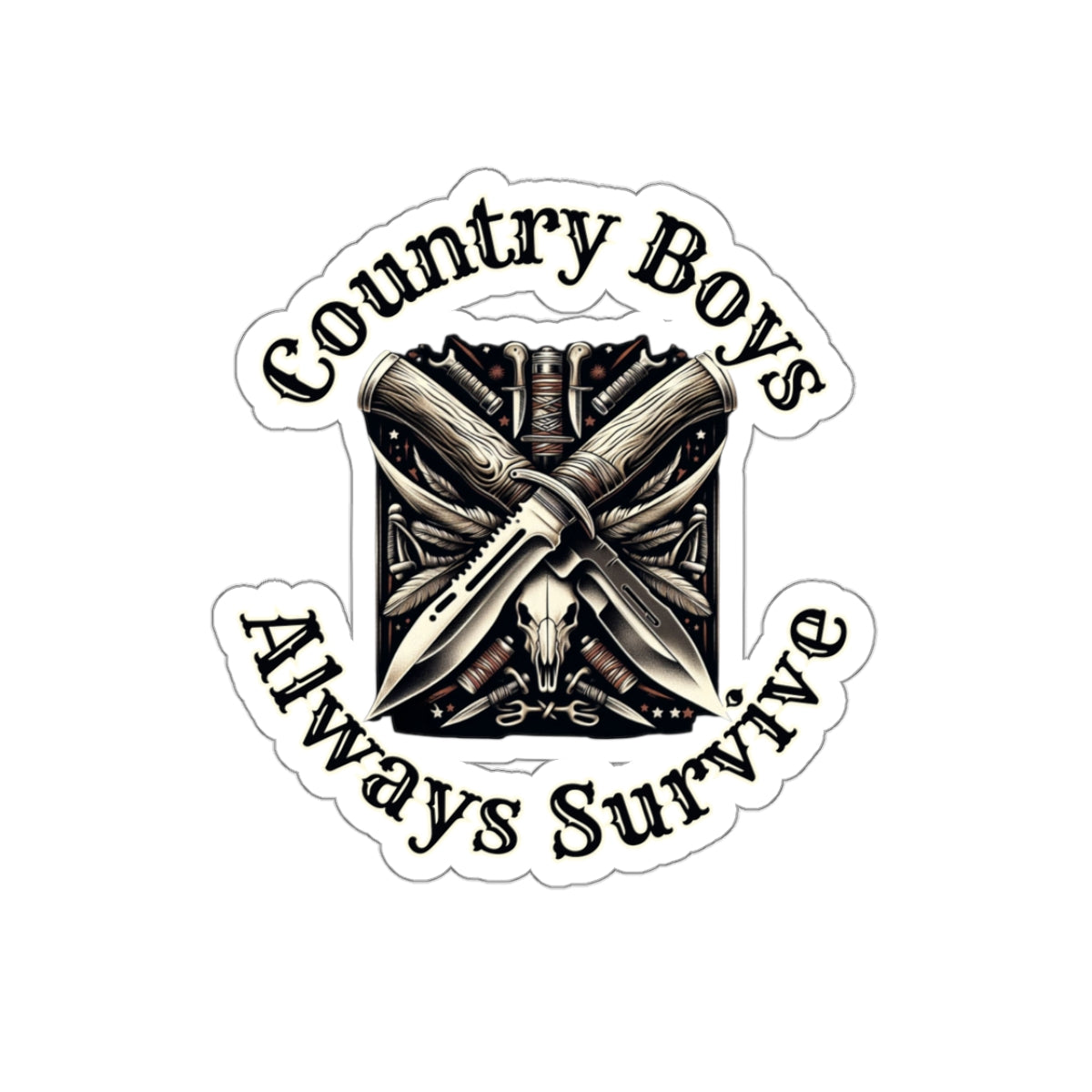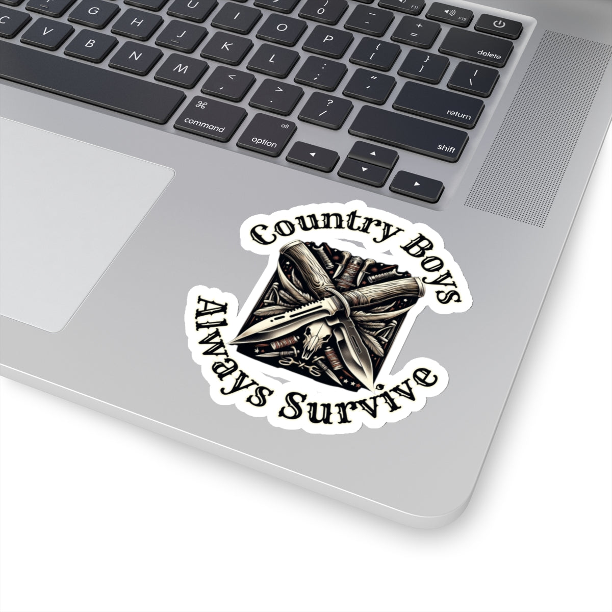 Rugged Resilience Decals - Country Boys Always Survive Vinyl Stickers - Durable, Glossy Finish, Multiple Sizes - Perfect for Indoor Use