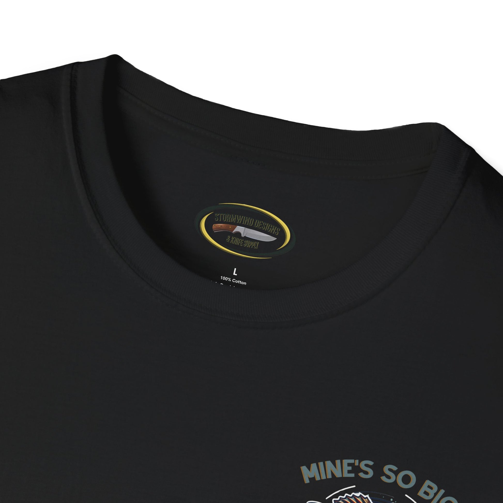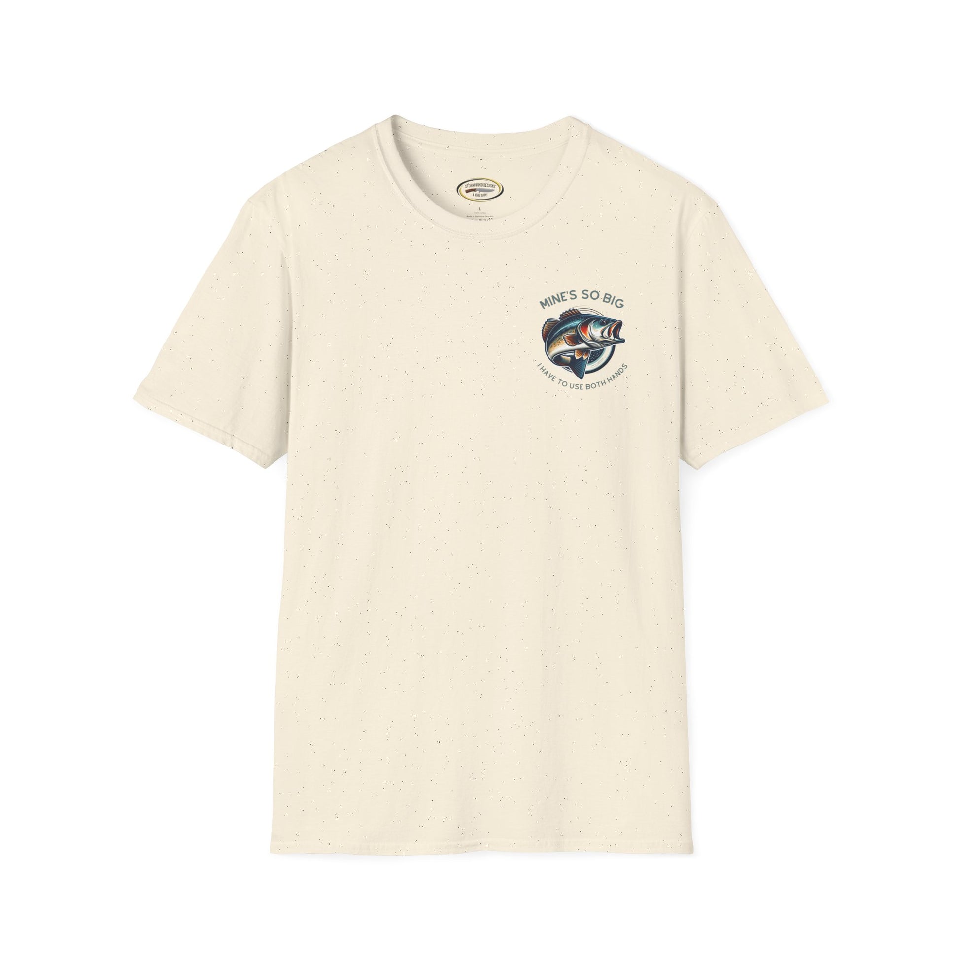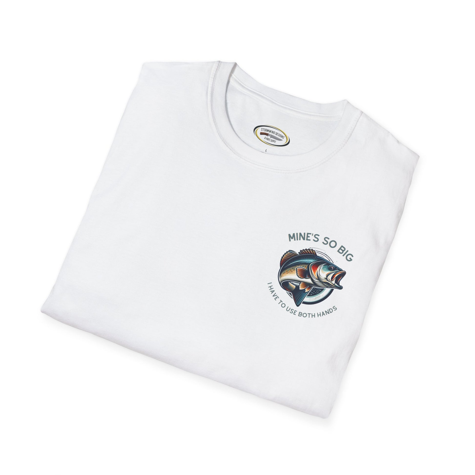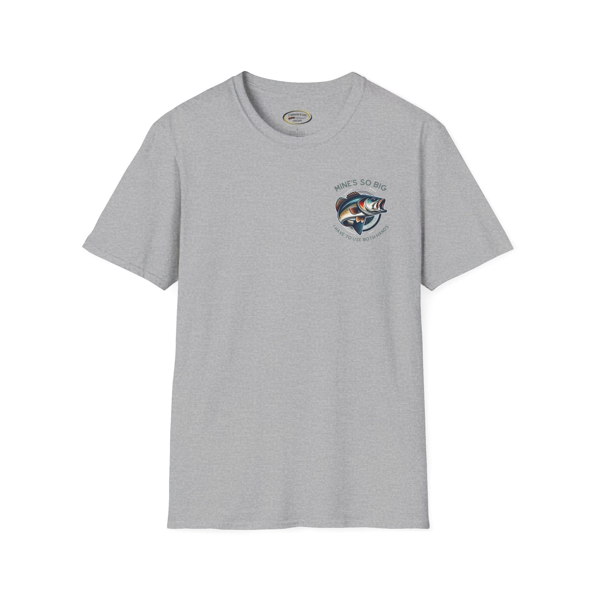 - Humorous Design: Featuring the playful phrase, “Mine’s so big I have to use both hands,” this t-shirt is sure to hook smiles and spark conversations among fellow anglers and friends.