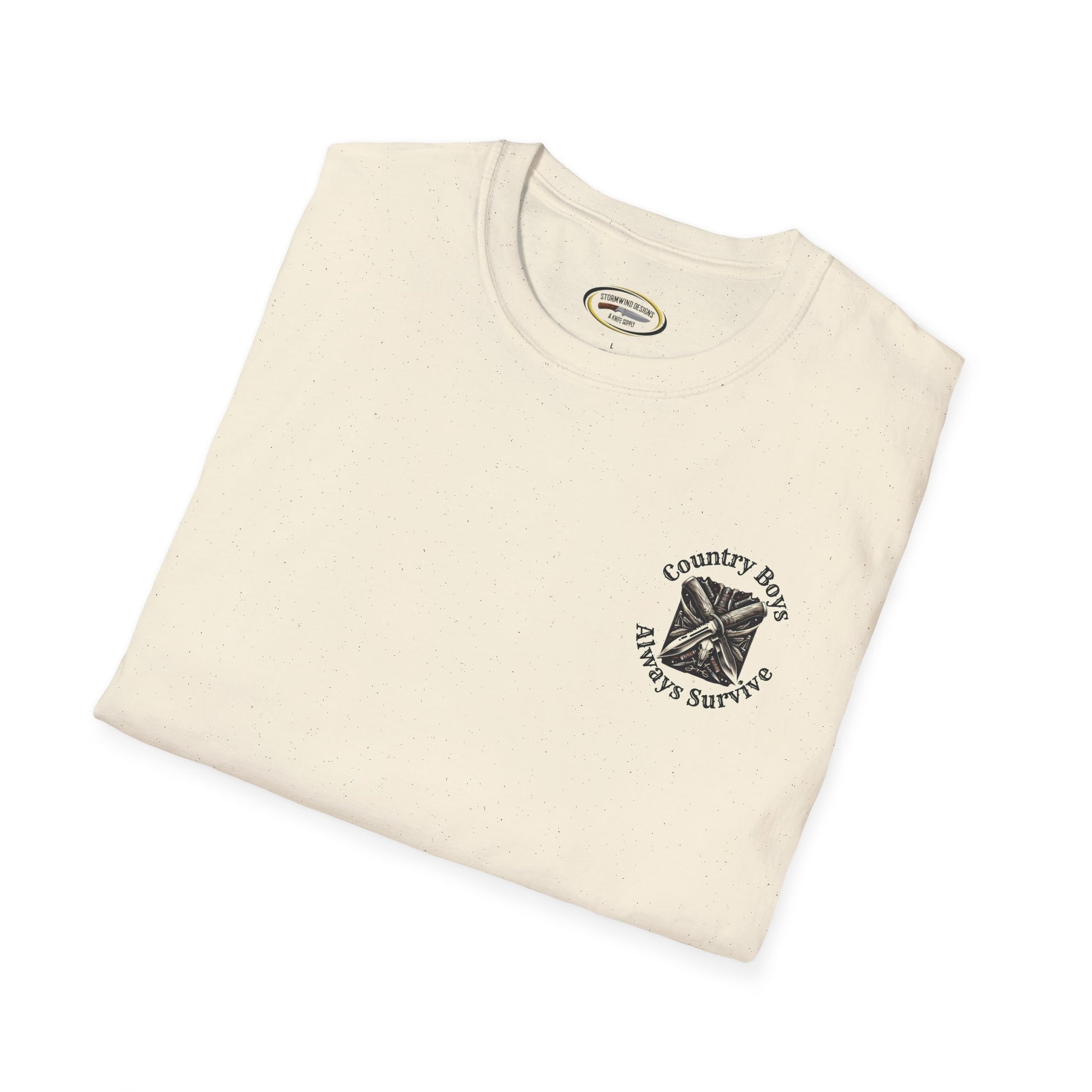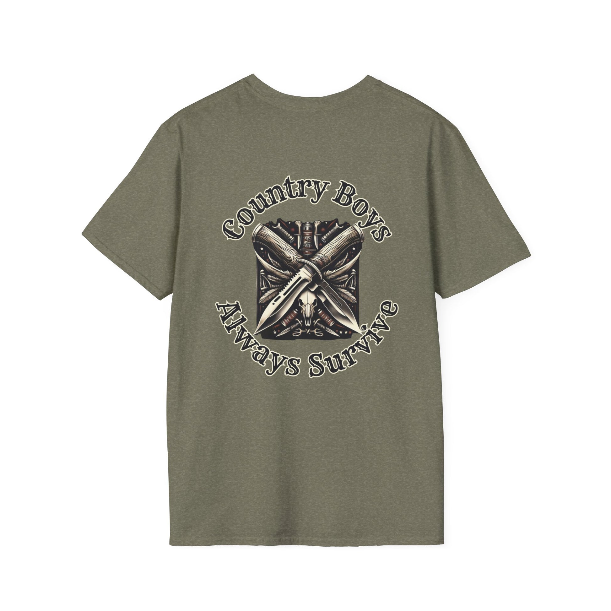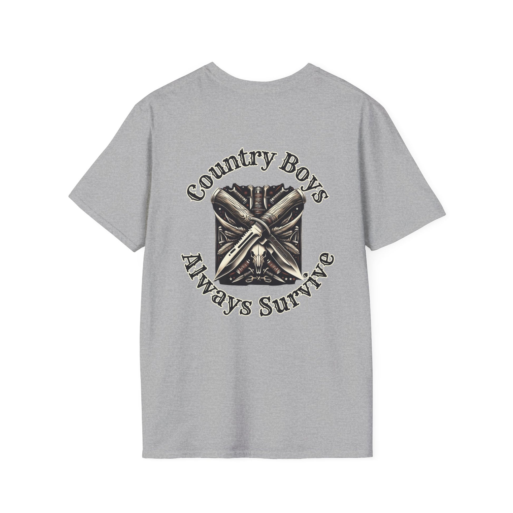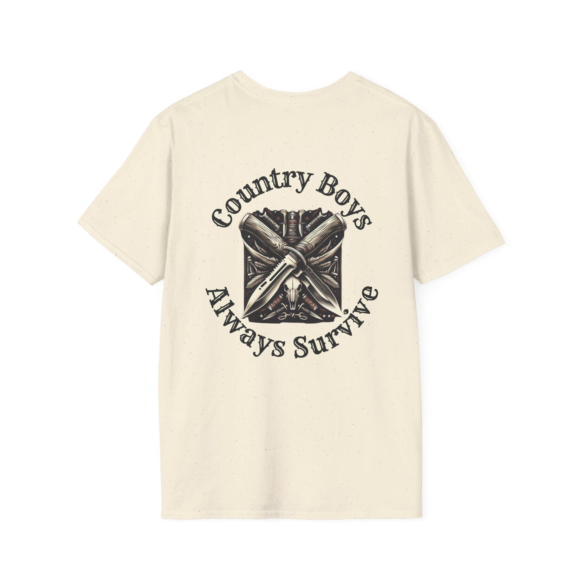 Unisex ‘Country Boys Always Survive’ Tee - Soft Ring-Spun Cotton, Durable Twill Tape Shoulders, Ethically Made & Oeko-Tex Certified