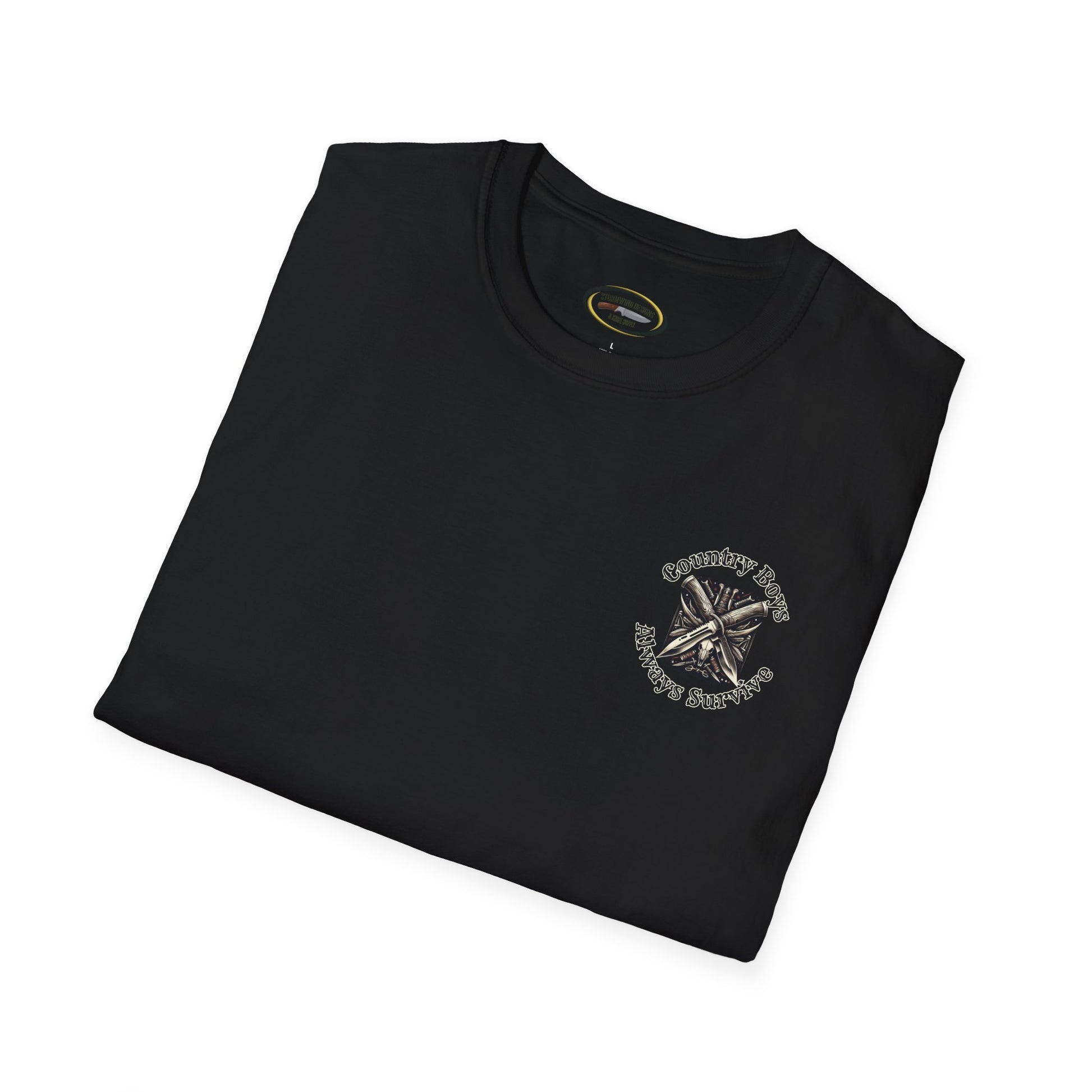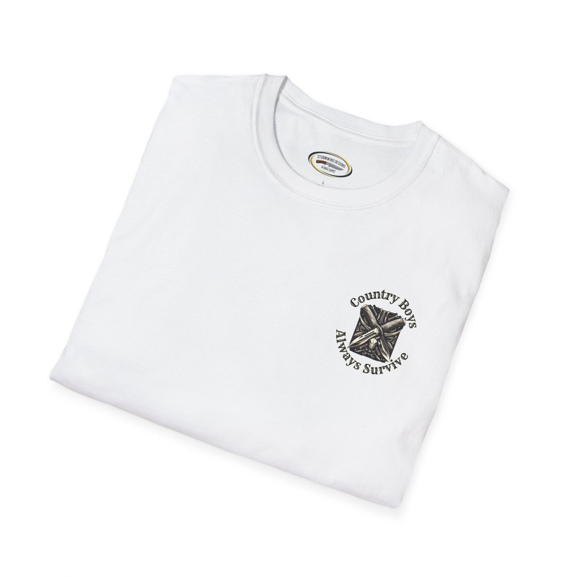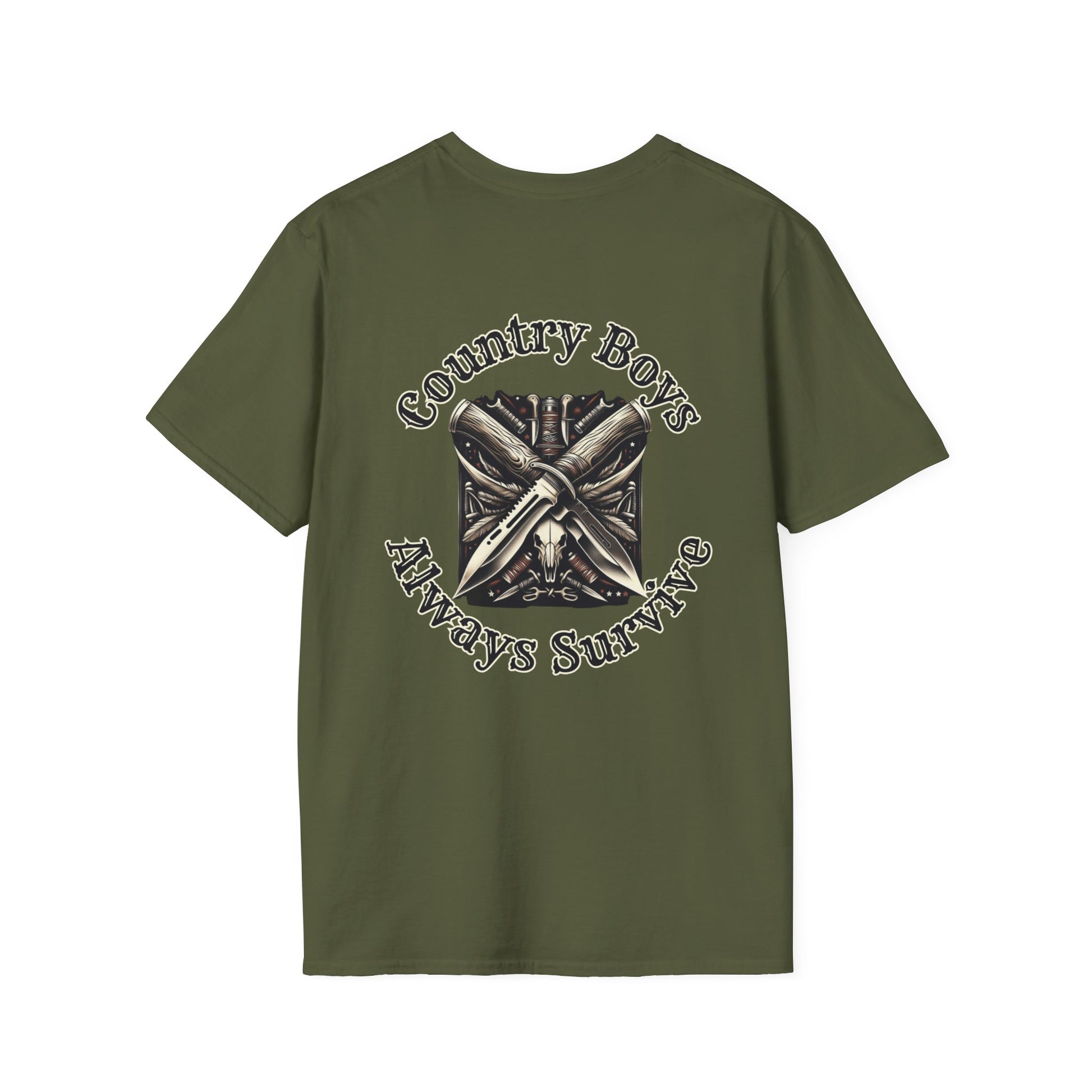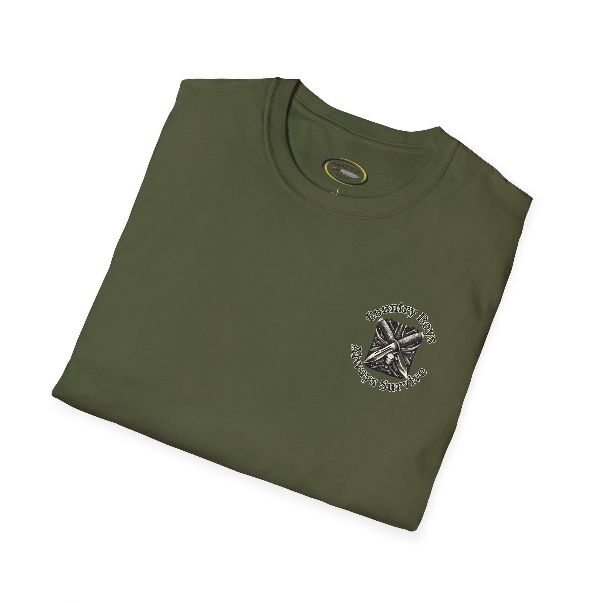 Unisex ‘Country Boys Always Survive’ Tee - Soft Ring-Spun Cotton, Durable Twill Tape Shoulders, Ethically Made & Oeko-Tex Certified